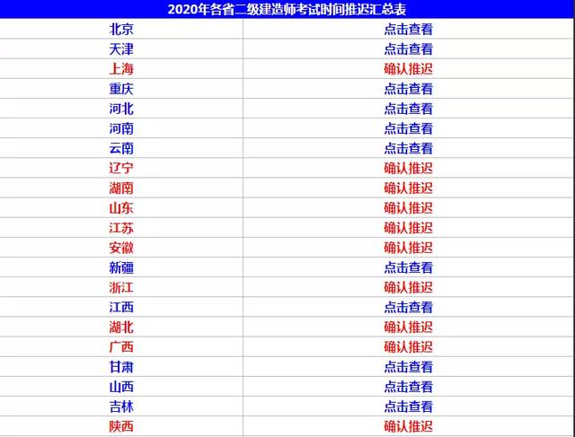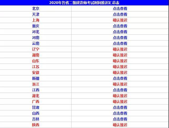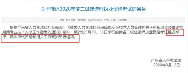 二十个省市发布延迟等二建考试讯息